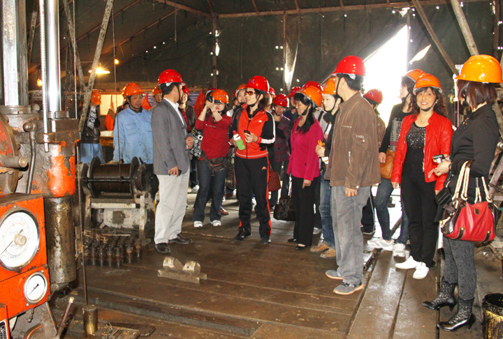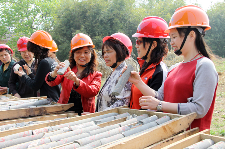 家属们戴上安全帽,参观了沙溪铜矿外围深部普查的四台钻机现场。在钻机的轰鸣声中,家属们亲眼看到自己丈夫在机台内外不停地忙碌。当她们看到摆放整齐的岩芯时,好奇地围在周经理身旁认真聆听他的介绍。通过参观,她们对自己丈夫艰苦的工作环境和肩负的使命有了更深刻的理解,大家纷纷表示,一定做好“后方”工作,不让丈夫分心,并时时刻刻提醒和督促丈夫注意安全。