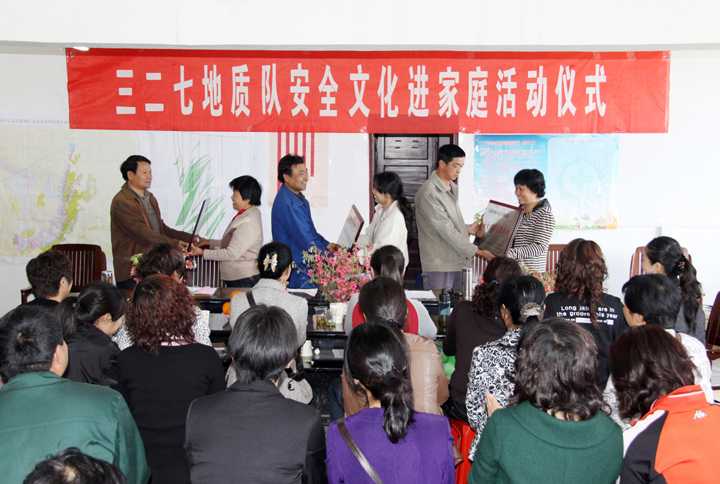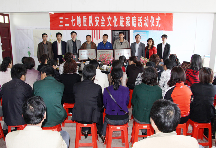 接着,在庐江地区找矿综合项目部,举行了安全文化进家庭活动仪式,并表彰了第一季度安全文明优胜机台。