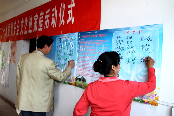 最后,参加人员在《安全文化进家庭倡议书》上郑重地签了名,承诺从自己做起,从现在做起,用爱和亲情构筑安全生产新防线,发挥家庭在安全文化建设中的积极作用,为我队地勘经济又好又快发展,为构建和谐地勘做出积极贡献。