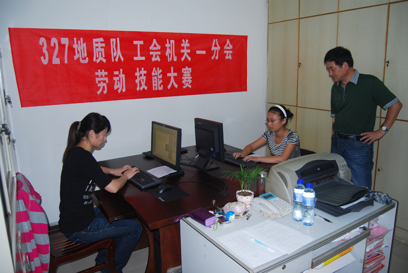 8月26日下午3时,队纪检监察科办公室,聚集了来自机关一分会及邀请而来的地勘院分会各小组的职工。东面墙上“327队工会机关一分会劳动技能大赛”的横幅告诉人们,一场别开生面的电脑输入竞速大赛即将在这里举行。