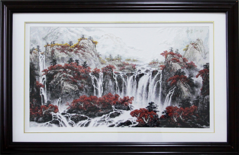 我队迟岚参展作品:十字绣《秋山泉韵》