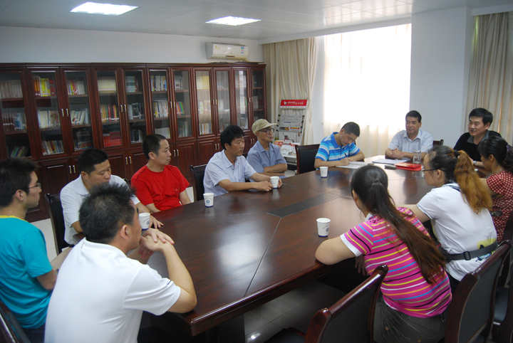 队党委书记王新民、工会主席赵安庆与受助的升学子女家庭座谈