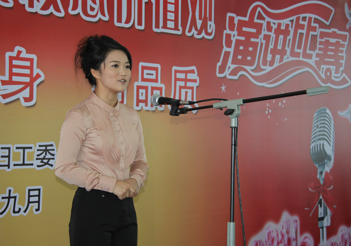 我队选手彭婧正在演讲