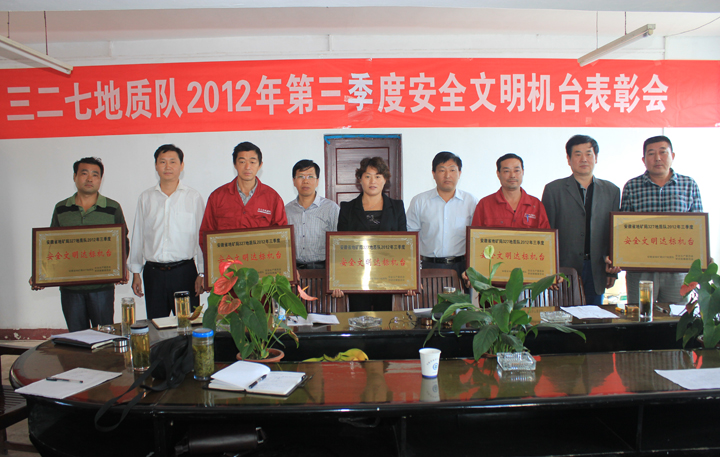 副队长张正在讲话中指出,此次表彰会既是安全文明机台的创建推进会,又是总结反思会。他就目前钻探生产安全管理存在的安全意识松懈等问题,提出了几点要求:一是提高认识,了解什么是安全生产标准化;二是根据我队实际,制定安全生产目标和考核办法;三是强化安全生产教育和安全生产技能培训,奖惩并举,齐心协力,保质保量完成钻探生产任务。张正还特别强调各钻探生产要提早做好冬季安全生产各项预防工作。