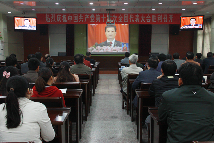 我队党员干部收看十八大开幕式盛况