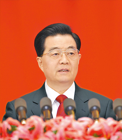 11月8日,胡锦涛在中国共产党第十八次全国代表大会上作报告。 新华社记者 黄敬文摄