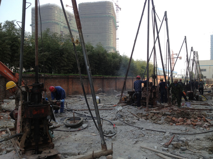 39上午10:18分,队新能源公司芜湖核勘总院科研楼地源热泵中央空调项目施工现场鸣起鞭炮,数台钻机开动,标志着该项目正式开工。芜湖核勘总院、振兴监理、新能源公司、芜湖勘查院等领导莅临现场祝贺。这是安徽地矿新能源有限责任公司向“两会”献上的一份厚礼。