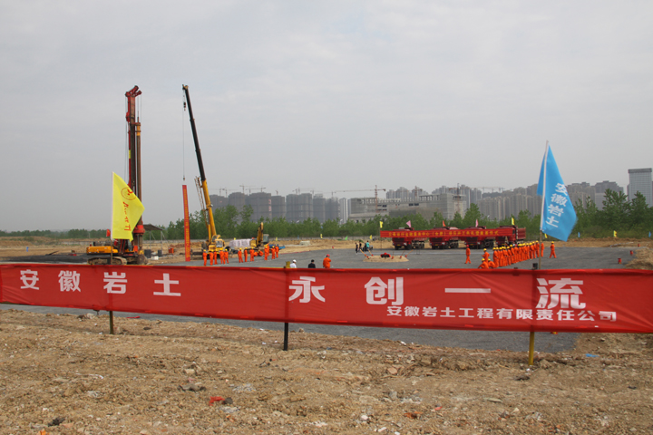 由安徽岩土工程有限公司承接的交通银行金融服务中心(合肥)桩基工程项目于4月16日举办开工典礼暨奠基仪式。据了解,该项目位于滨湖新区,项目总造价22亿元 ,建筑面积22万平方米,该中心建成后将成为滨湖新区标志性建筑。