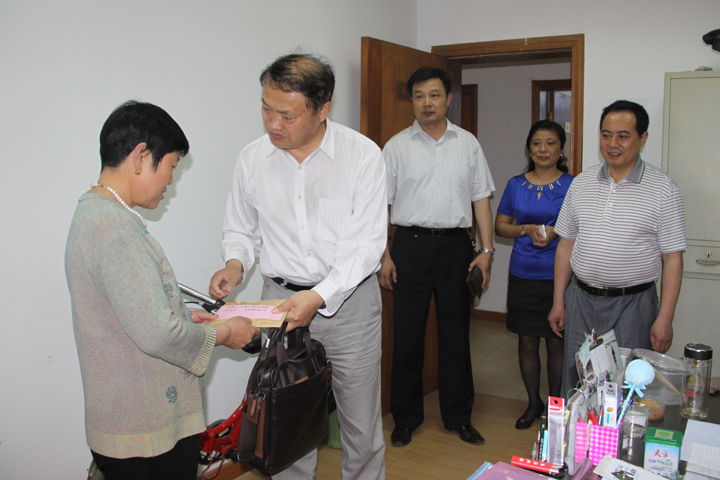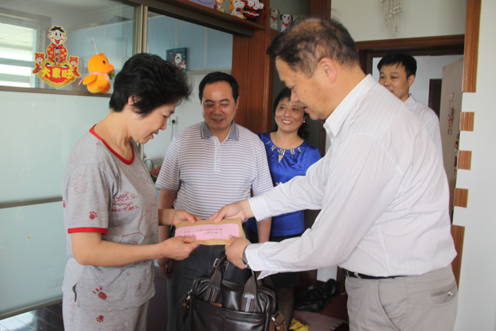 5月21日下午,省地质工会主席王宁川、局机关党委书记袁勇智在队党委书记方招信的陪同下,走访慰问我队三户大病退休职工家庭。