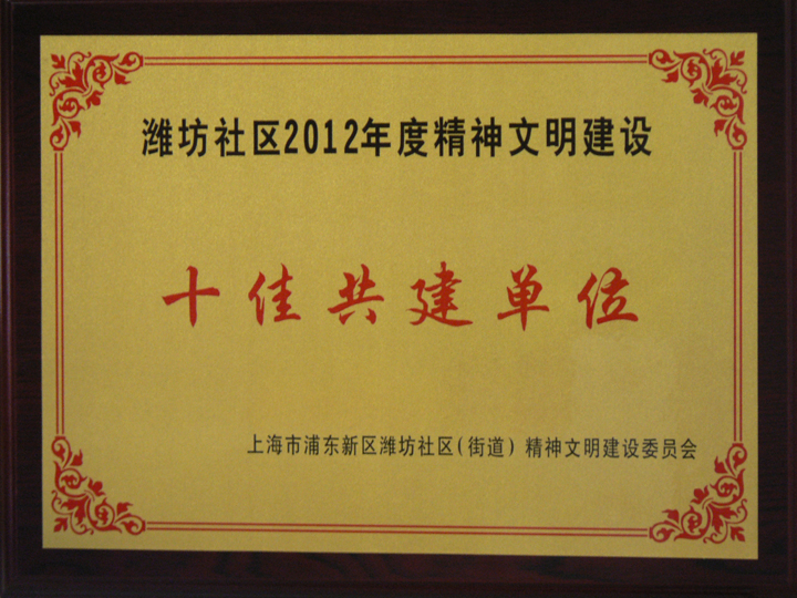 在5月29日召开的潍坊社区2013年精神文明建设工作会议上,岩土上海分公司从全社区几十家文明单位中脱颖而出,继去年荣获“2011年度十佳文明共建单位”称号后再获该项殊荣,被评选为“2012年度十佳共建单位”称号,受到上海市浦东新区潍坊社区(街道)精神文明建设委员会的表彰。这是上海分公司在精神文明创建活动中取得的又一新成绩。