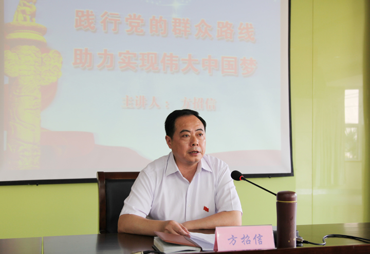会上,方招信书记上了一堂题为《践行党的群众路线,助力实现伟大“中国梦”》的党课。方书记结合“围绕保持党的先进性和纯洁性,以为民务实清廉为主要内容”的群众路线教育实践活动,从为民务实清廉是新时期群众路线的时代要求、践行党的群众路线是实现“中国梦”的根本保证、把以为民务实清廉为主要内容的党的群众路线落到实处等三个方面,详细阐述了群众路线的深刻内涵、时代要求、与实现“中国梦”的关系以及如何推进落实群众路线教育实践活动。