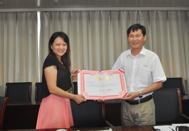 队纪委书记、工会主席史俊向各相关分会颁发工会之友和工会积极分子获奖证书