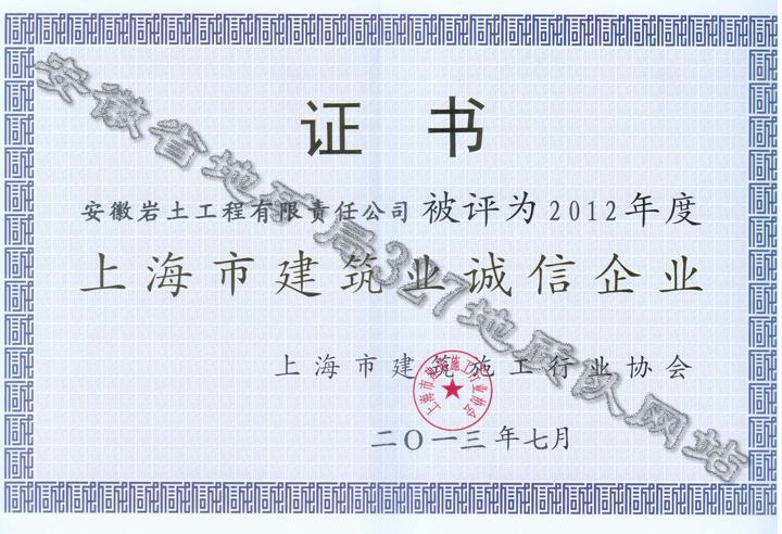 8月1日,由上海市建筑施工行业协会组织开展的上海市建筑施工企业和进沪建筑施工企业2012年度诚信建设评价评选活动结果揭晓,队岩土公司再次荣膺“上海市建筑业诚信企业”。这已是队岩土公司连续六年获得“上海市建筑业诚信企业”称号。