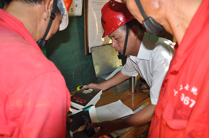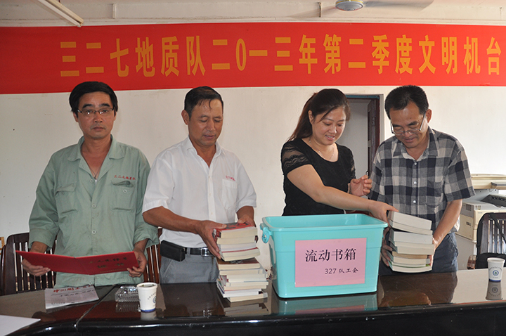 队岩土公司钻探工程处经理周利胜从队工会工作人员手中搬过沉甸甸的流动书箱,连声说道:“好!好!钻探一线职工非常需要它。”