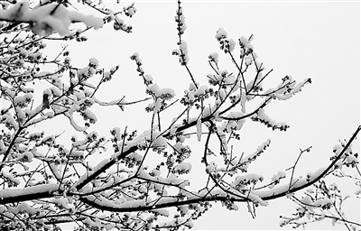 雪中的腊梅,则显出另一样的娇艳,也许雪并不如霜那样坚实和严密,而是有着松软、温和的外表,以及洁白和厚度,每一枝上都被大雪倾覆的腊梅,白色和柠檬样的黄色相互衬托,这样淡雅的色彩搭配在隆冬低沉氛围里,异样温暖和明亮,仿佛就是流淌过眼前的一道道旭日光芒。