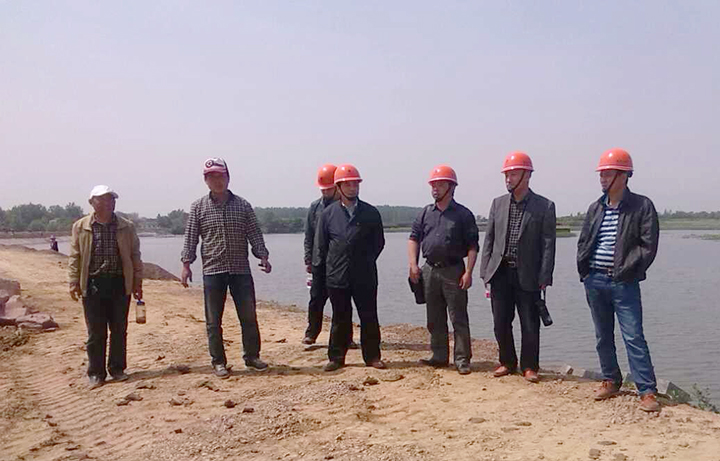 队领导在水电公司肥西花明荡水库除险加固施工现场检查指导工作