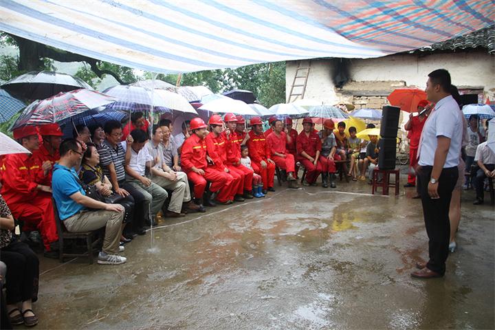 演出因地制宜,艺术团精心安排了男声独唱、女声独唱、小品、男声小合唱、拉丁舞、陶笛演奏、快板、舞蹈等11个形式多样的文艺节目,以我队钻探工程处3号机职工驻蔡湾村民居门前场地为舞台,尽管一阵大雨不期而至,但演员们仍冒雨精心表演,赢得了正在沙坪沟钼矿施工主、副井的我队及313队的全体钻探队员的阵阵掌声。