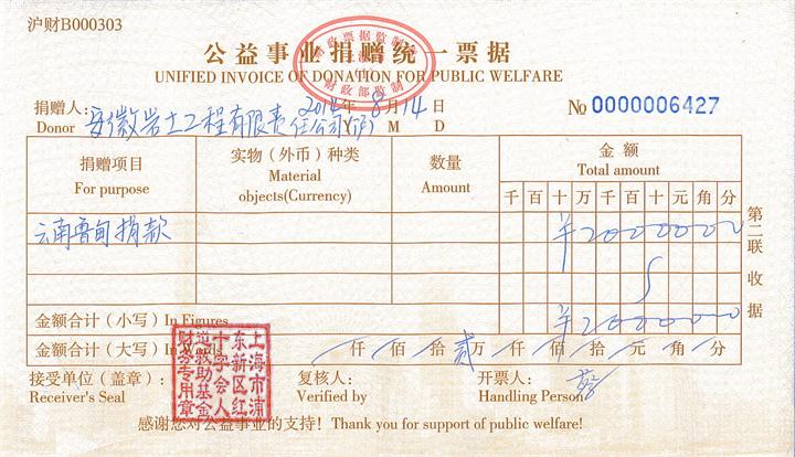在这次活动中,该公司和各支部职工共捐款人民币20000元,目前这笔善款已经上交给了潍坊街道红十字会办事处。在捐赠仪式上,潍坊街道领导和红十字会办事处负责人称赞,安徽岩土公司的善举为整个潍坊社区的文明单位带了个好头,做出了良好的榜样。