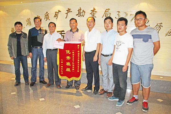 队领导为九月份“我为327队做贡献——优秀班组”颁发锦旗