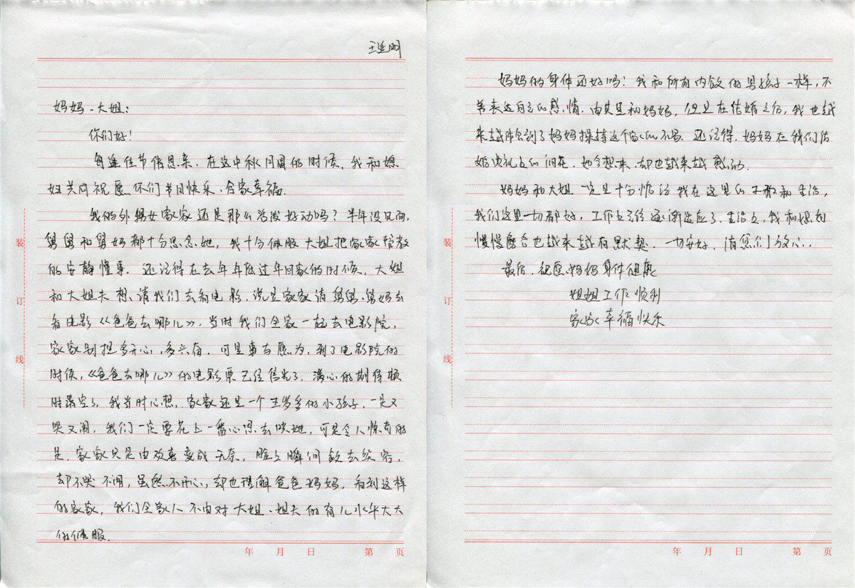 启信安康!此信儿思虑良久,早已有意,非笔墨能表其心,值此单位征文之际,诉儿心之所向,望父母大人有缘阅之。