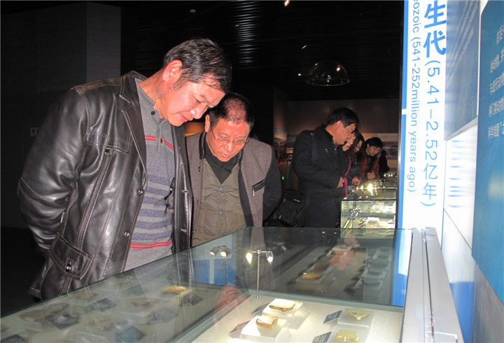 12月9日上午,工勘院第三党支部在院总支书记季汝华、副书记迟岚带领下,支部党员及入党积极分子一行十余人,前往安徽省地质博物馆开展了“学好地质史,做好地质人”的主题教育活动。党员同志们认真观看了地球厅、生命演化厅、资源与环境厅、矿物与岩石厅等展厅。同志们认真观看各展厅的实物与讲演资料,尤其是在参观矿物与岩石厅时,大家一边观看各种矿物岩石,一边讨论与平时工作中所遇到的岩石、断裂构造等相关问题,对地质史加深了了解,使得以往理论知识在此次的实物观展后有了进一步的提高。