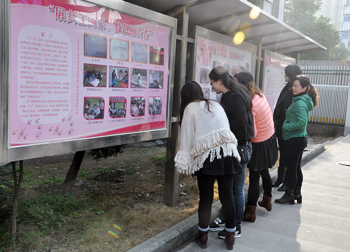 为庆祝我队建队六十周年展现我队女职工的巾帼风采,队女工委制作了 “展女工风采、炫靓丽青春”主题展板,着力宣传我队女职工在2014年度队“三个文明”建设中的“蛮拼”的身姿。一幅幅展示我队女职工工作、生活和开展丰富多彩文化活动的图片,既展现了我队女职工爱岗敬业、无私奉献的精神状态,又表现了女职工在队女工委的带领下立足岗位创先争优的工作成果。展板展出后吸引人们争相驻足观看,达到了很好的效果。