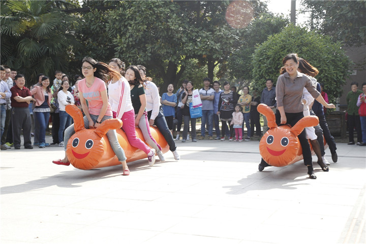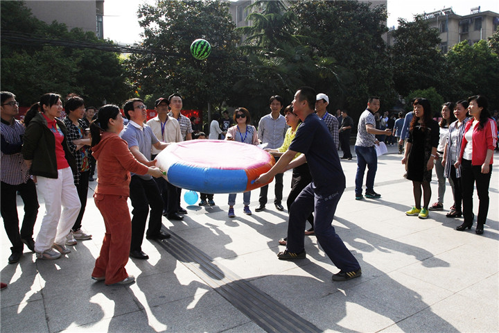 活动当日,运动员、职工和家属早早就来到广场上。随着裁判一声“比赛开始”,广场上顿时成为欢乐的海洋。队机关、实体六个分会近三百名职工参加了七个项目的趣味比赛。只见选手们在各自项目中大显身手,一展风采:“众星捧月”项目选手们势均力敌,掂球次数相差无几。“前进毛毛虫”讲的是力量和团体协调性,选手们都不甘落后、奋力一博。“摸石头过河”中,腿长灵活的男同志虽然略占上风,但年轻的女勘探队员也当仁不让,一度曾和男子汉们齐头并进。由于球的限制,参加“企鹅漫步”的选手们有点手忙脚乱,却更显憨态可掬。“螃蟹背西瓜”两个选手搭配最为重要,可一位大个子选手在比赛的后半段程硬将他的搭档连球带人背过了终点,引得观众惊呼连连,被逗得前仰后合。“套圈游戏”最有人缘,观众们也都纷纷一试身手。压场“拔河比赛”,是大力士的舞台,拉拉队欢声雷动,加油声此次彼伏,大家胜不骄败不馁,友谊第一、比赛第二,讲文明、讲风格。