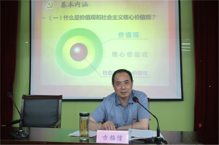 会上,方招信书记上了一堂题为《弘扬三光荣精神,践行社会主义核心价值观》的党课。方书记从用大量理论依据和典型案例入手,深刻剖析了社会主义核心价值观的提出背景和基本内涵,提出“三光荣”精神是地勘单位践行社会主义核心价值观的具体体现,它是地勘行业科学发展的旗帜、是地质人道德品质的真实写照、是地勘行业永恒的精神追求。方书记号召广大党员领导干部和基层党员,努力践行社会主义核心价值观,从细处着眼、从小处着手、从实处着力,不断提升文明创建水平,不断提升职工文明涵养,共同促进我队双文明建设再上新台阶。