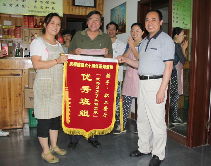 队党委书记方招信为职工餐厅送去“优秀班组”锦旗