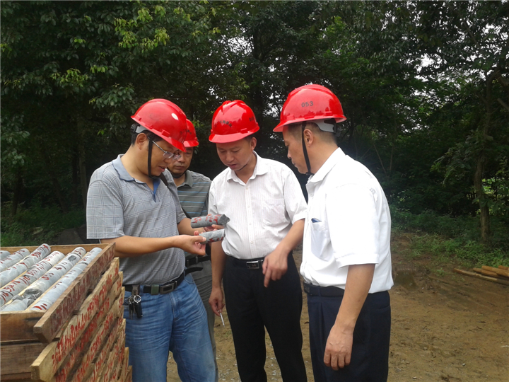队领导一行每到一个钻机,都要与地质人员和机台人员共同交流,了解现场管理及钻探进尺情况,观看岩心见矿情况,要求确保夏季安全生产和项目的按期完成,努力完成省厅下达的找矿任务。赵宏队长充分肯定了地质人员和钻探工程处干部职工艰苦朴素、不怕吃苦的地质人精神,并叮嘱大家在高温、雨季天气时的施工安全、饮食安全、交通安全等注意事项,要求在保证安全生产的前提下,确保年底提交沙溪外围钻探报告。