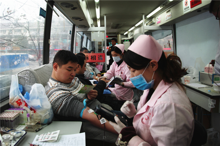 由于合肥市中心血站血库告急,1月22日下午3时许,我队组织职工、志愿者、职工家属等十余人,冒着风雪前往东七街道参加志愿献血活动。