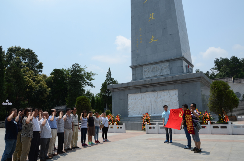 工勘院党总支为了深入开展“两学一做”学习教育活动,6月22日于建党九十五周年前夕暨红军长征胜利八十周年之际,组织党员及入党积极分子前往革命老区将军县金寨开展“弘扬红军长征精神,坚持理想信念,做奉献守纪的合格党员”的教育活动。
