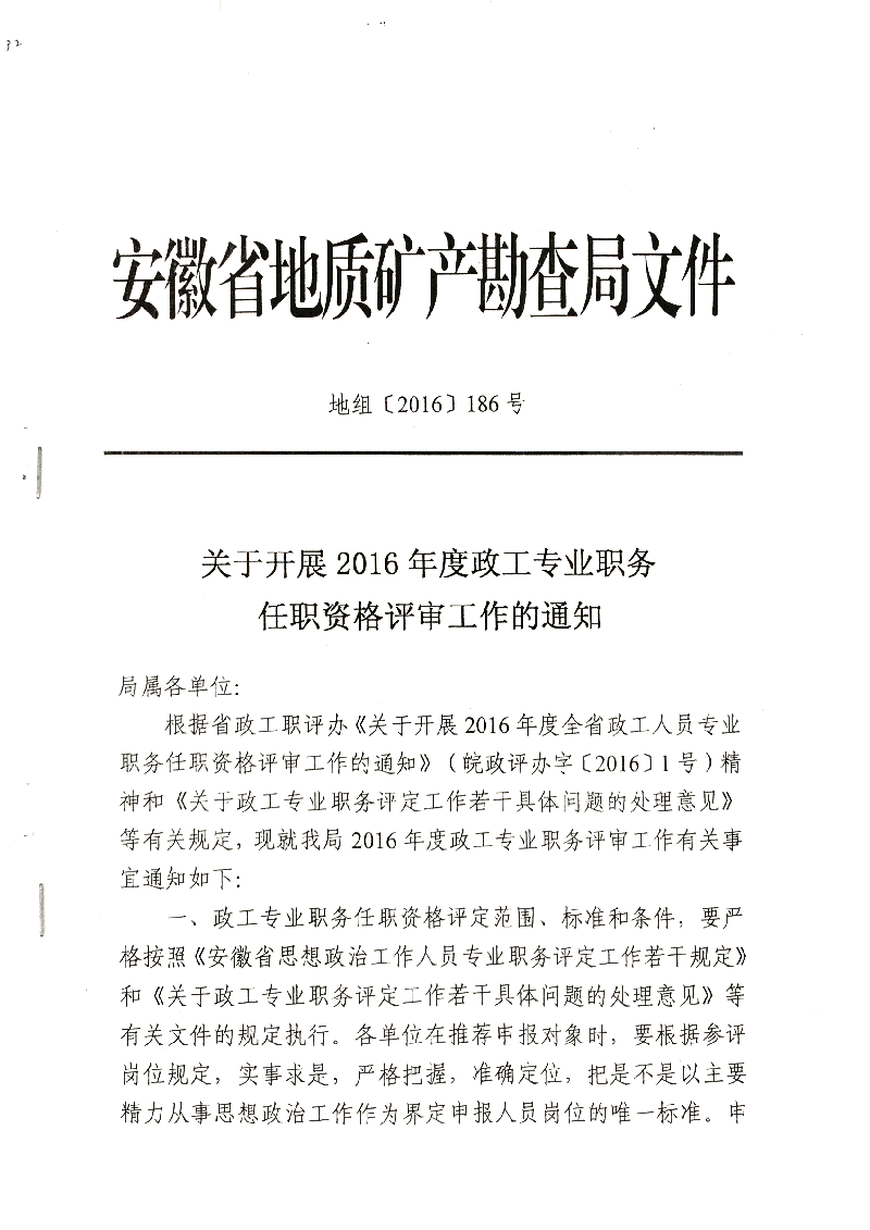 1、《关于开展2016年度政工专业职务任职资格评审工作的通知》(地组[2016]186号)