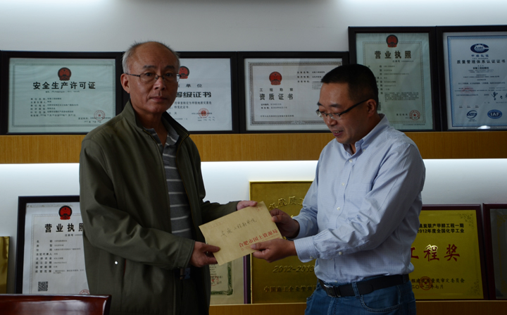 10月10日上午,合肥市国土资源局地环处处长查睿一行专程来到我队工勘院送来一封感谢信。副队长林宾代表工勘院接收了感谢信。