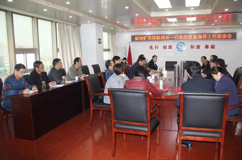 11月15日上午,省地矿局副局长侯其标一行赴我队调研指导工作,重点就局“十三五”发展规划推进及全面落实地勘单位深化改革等相关事宜召开座谈会,会议由娄尤华队长主持。