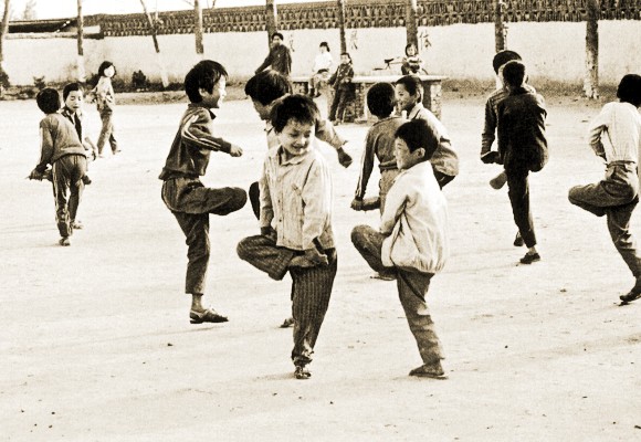 后来我和姐姐先后上了村子边上的一所小学,一排六七间的砖瓦房,一个年级一间,最边的一间是老师的办公室,四里八乡的孩子都到这里上学。学校很简陋,桌课都没有,板凳也要学生自己带。操场也就是个打谷场,一旁堆着高高的稻草垛。一下课学生就在操场上跳房子、跳皮筋,踢毽子,在晾晒的稻草上翻跟斗追逐打闹。