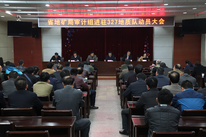 11月17日下午,我队于会议中心召开省地矿局审计组进驻327队动员大会。局审计处处长罗翔、调研员黄长辉、副处长何朝阳及中天健审计事务所工作人员出席动员大会,会议由队长娄尤华主持。