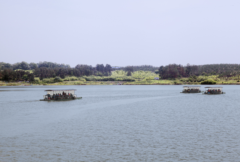 乘坐竹筏赴两处景岛观景