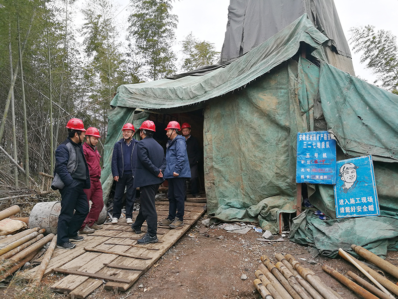为切实贯彻落实省国土厅、省地矿局关于地质工作滞后项目整改的相关文件和要求,3月5日,我队队长娄尤华、省地调院院长钟华明和我队副队长、总工程师张千明,分管钻探生产的副队长倪晋贵等一行对庐江县黄寅冲地区铁铅锌矿普查(续作)项目进行现场督查和实地指导。
