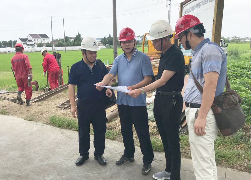 队长娄尤华、副队长林宾在工勘上海分院金山区吕巷镇截污纳管工程项目慰问时听取项目进展汇报