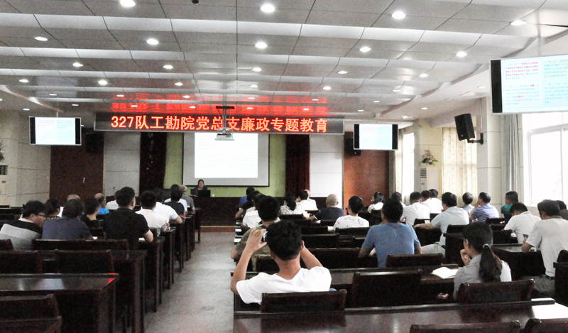 9月11日下午,为深入宣传贯彻新修订的《中国共产党纪律处分条例》,队纪委书记陈勇应邀赴工勘院党总支开展廉政专题党课教育。副队长、工勘院院长林宾出席会议。
