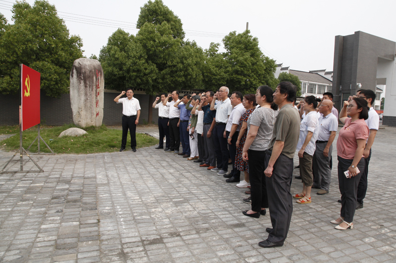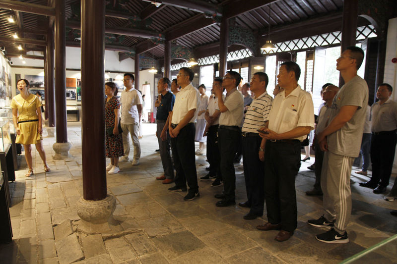 在渡江战役总前委旧址纪念馆,同志们认真聆听了讲解员的讲解,参观了馆藏图片和文物,重温了中国革命战争的历史,深情缅怀了革命先烈和渡江英雄光辉业绩和峥嵘岁月。参观结束后,队党委委员、队长娄尤华带领大家面向党旗,举起右手,重温入党誓词,表达了共产党员的坚定信念。