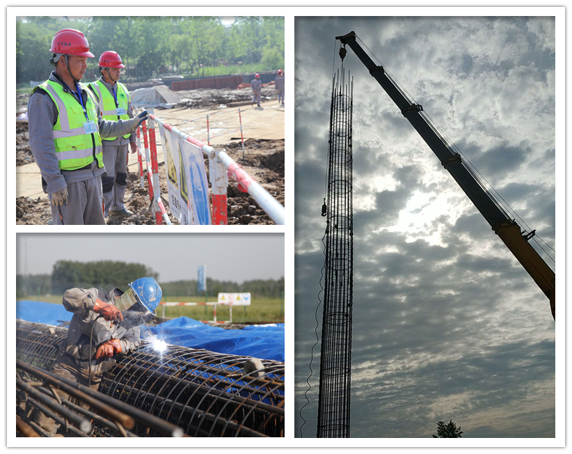 南跨第一根桩终于在12月26日开钻,桩基施工进展比预想缓慢。因为原是鱼塘,作业面填塘的砖渣多,砖渣松散淤泥稀软下层坚硬,在打桩过程中极易发生漏水、偏位、塌孔,这让大家着实捏了把汗。经过项目部所有同志共同努力,不断调整施工工艺,基本保持每天2根桩的速度进行。