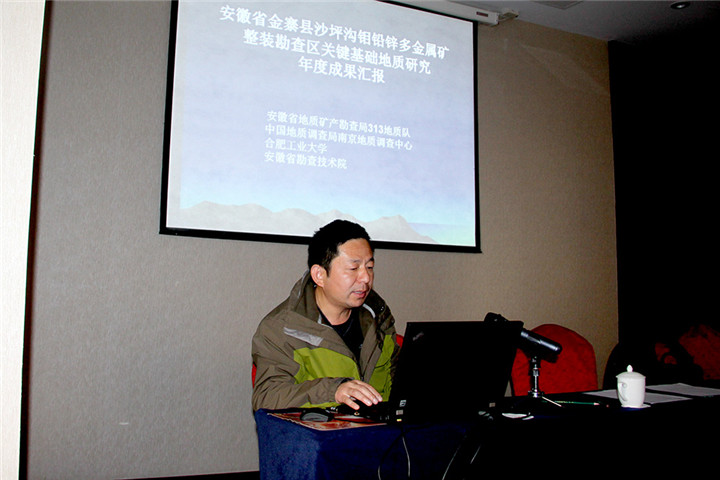 313队地质调查研究所副所长张怀东作沙坪沟钼铅锌多金属矿找矿成果汇报