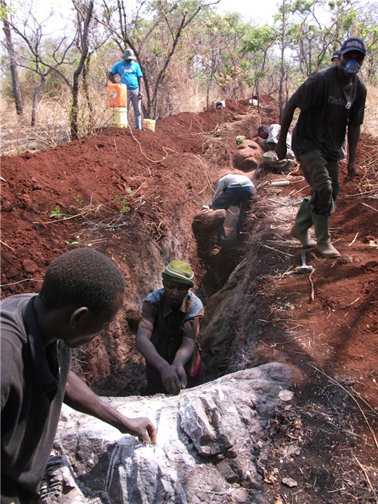 今年7月3号,我队地勘院职工涂文传、仇厚文、袁良喜、李道志四人到达非洲坦桑尼亚姆潘达地区开展野外勘查工作,历时五个多月,克服了语言、气候、饮食、流行病等种种困难,累计完成工作量:钻探1036米、槽探2500立方米、1:10000地质填图10平方千米及岩石地球化学剖面测量3040米。