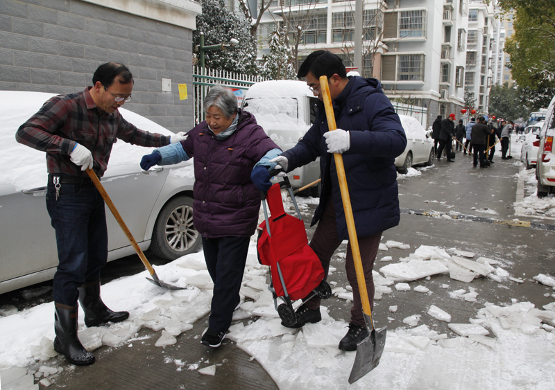 1月26日早上,干部职工铲雪过程中搀扶老人