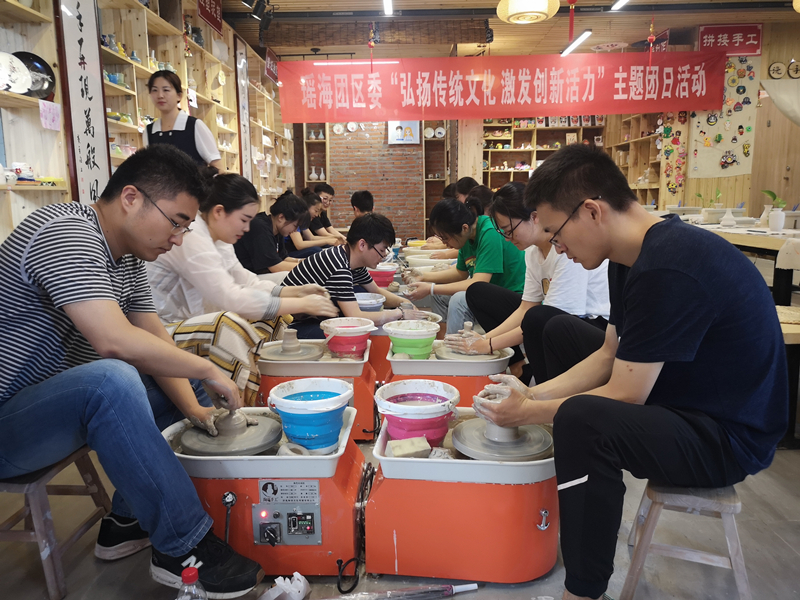 随后,青年们感受了陶艺的魅力。寿州窑是唐代六大名窑之一,以首创烧制黄釉瓷而著称于世。始烧于南北朝中晚期,兴盛于隋唐,停绕于唐末,存世约400年左右,失传近1500年。在省级非遗寿州窑陶瓷技艺传承人崔怀伦老师的带领下,大家虽然经历了短暂的失败,但凭借着充分的耐心、平和的心态坚持了下来,拥有了属于自己的陶艺作品。还有许多青年进行了攀岩体验,既考验了身体素质又考验了心理素质。
